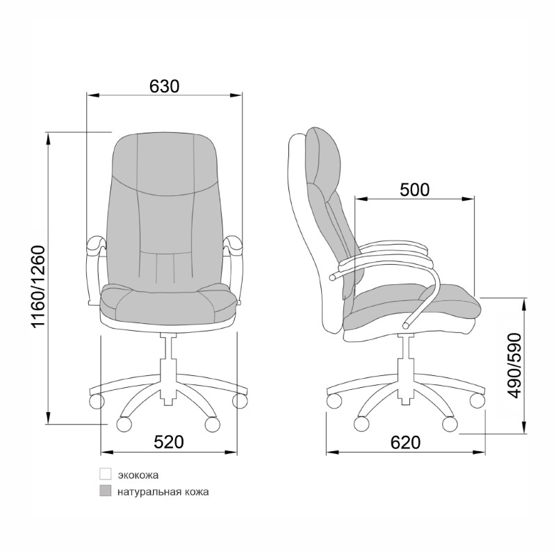 Кресло поворотное KING A, натуральная кожа, черный