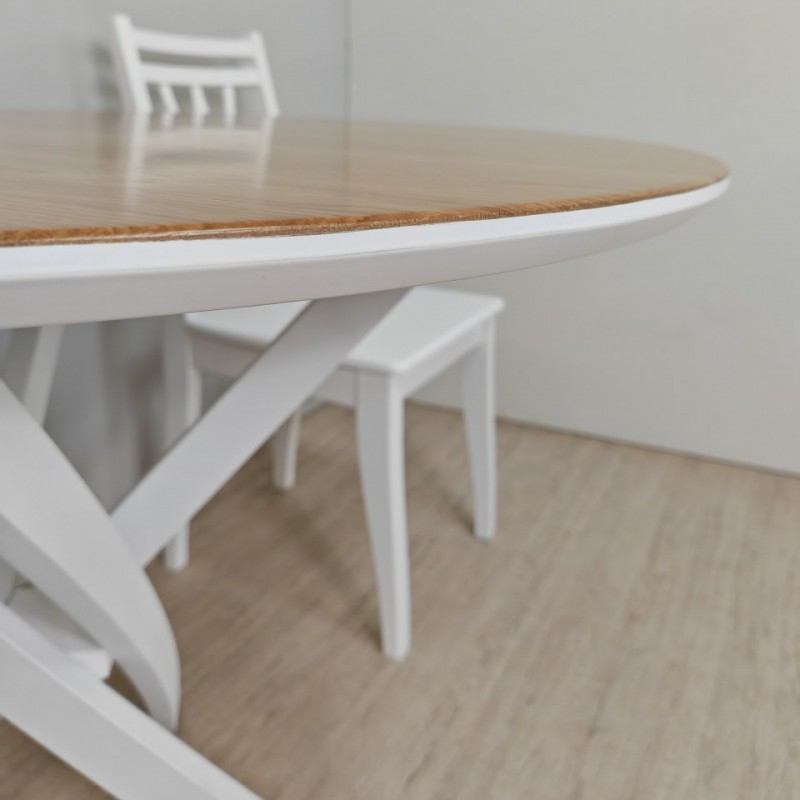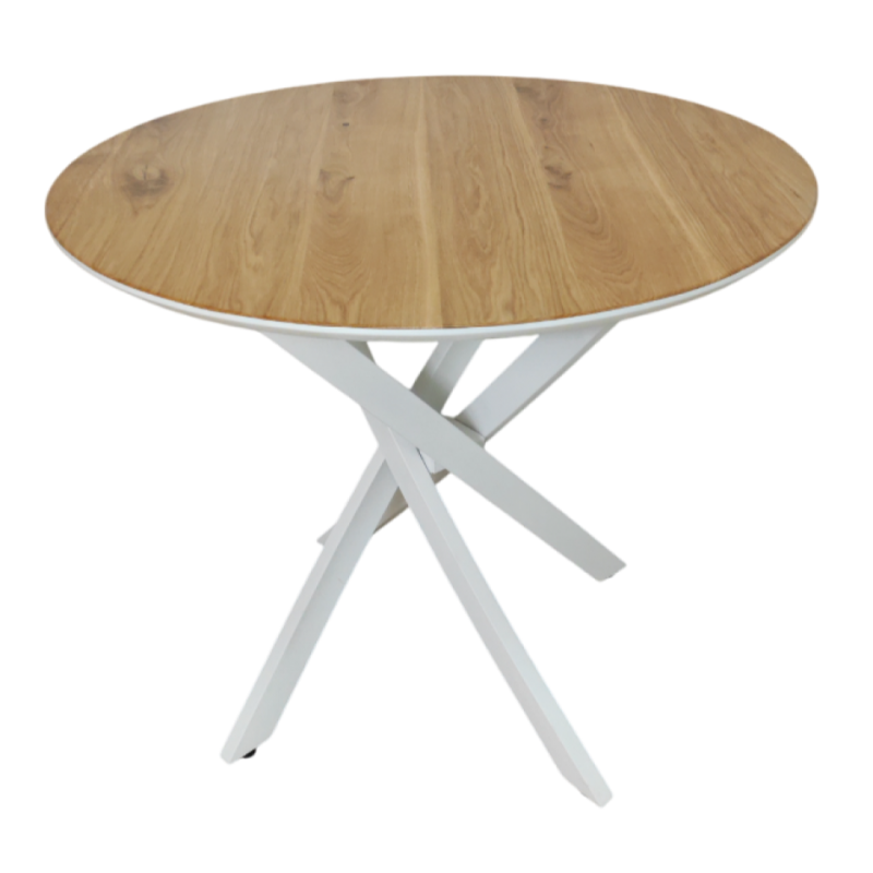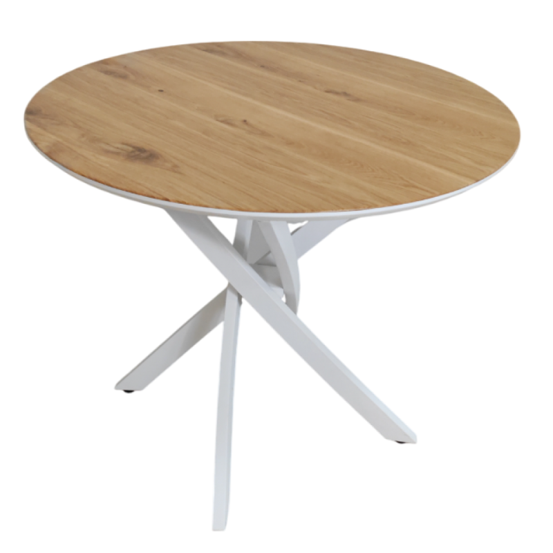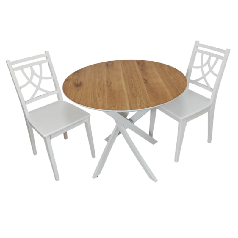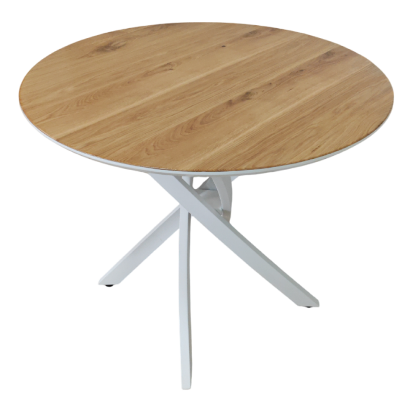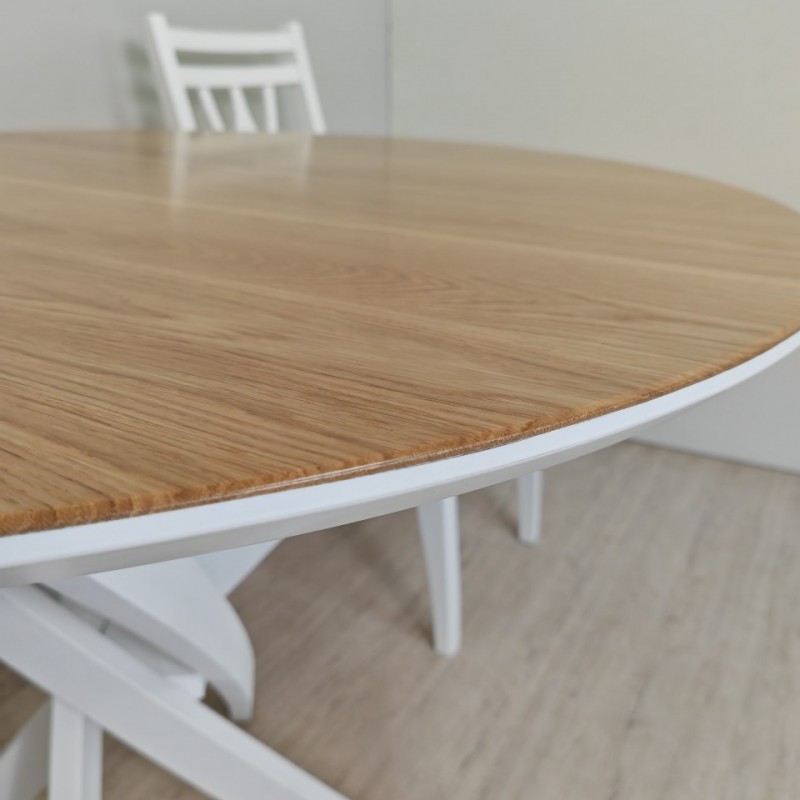 Стол обеденный круглый Лион (белый/дуб)